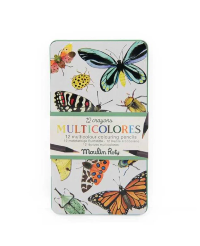 Plongez dans l’univers coloré avec ces 12 crayons multicolores de la collection Tout autour du monde de Moulin Roty ! Parfaits pour dessiner la faune et la flore, ces crayons à la mine magique donnent vie à tous vos coloriages. Ils sont rangés dans une boîte en métal décorée d’insectes, idéale pour les garder précieusement et les emmener partout. Un cadeau joyeux et créatif pour les enfants dès 3 ans qui aiment explorer en couleurs !