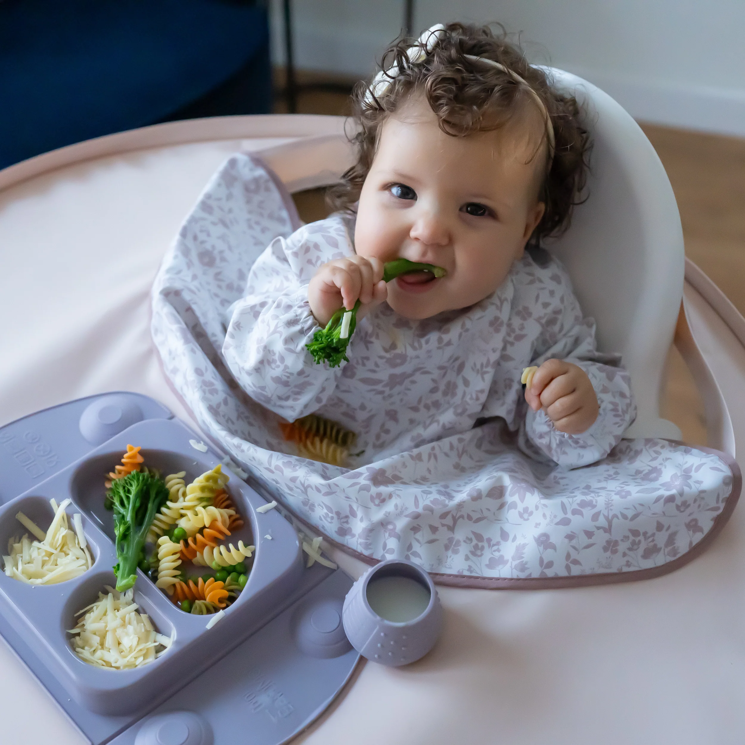 Complétez votre Kit Bavoir & Plateau avec un lot exclusif de deux bavoirs supplémentaires assortis à la nouvelle collection « Fleur de Jardin ».