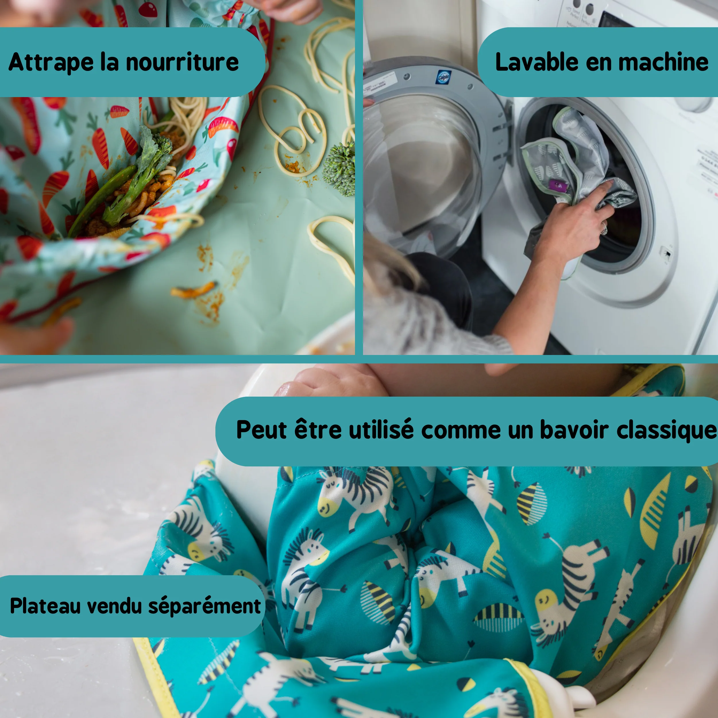 Idéal lorsque vous avez besoin de bavoirs en plus à utiliser avec notre Kit Bavoir & Plateau Tidy Tot.