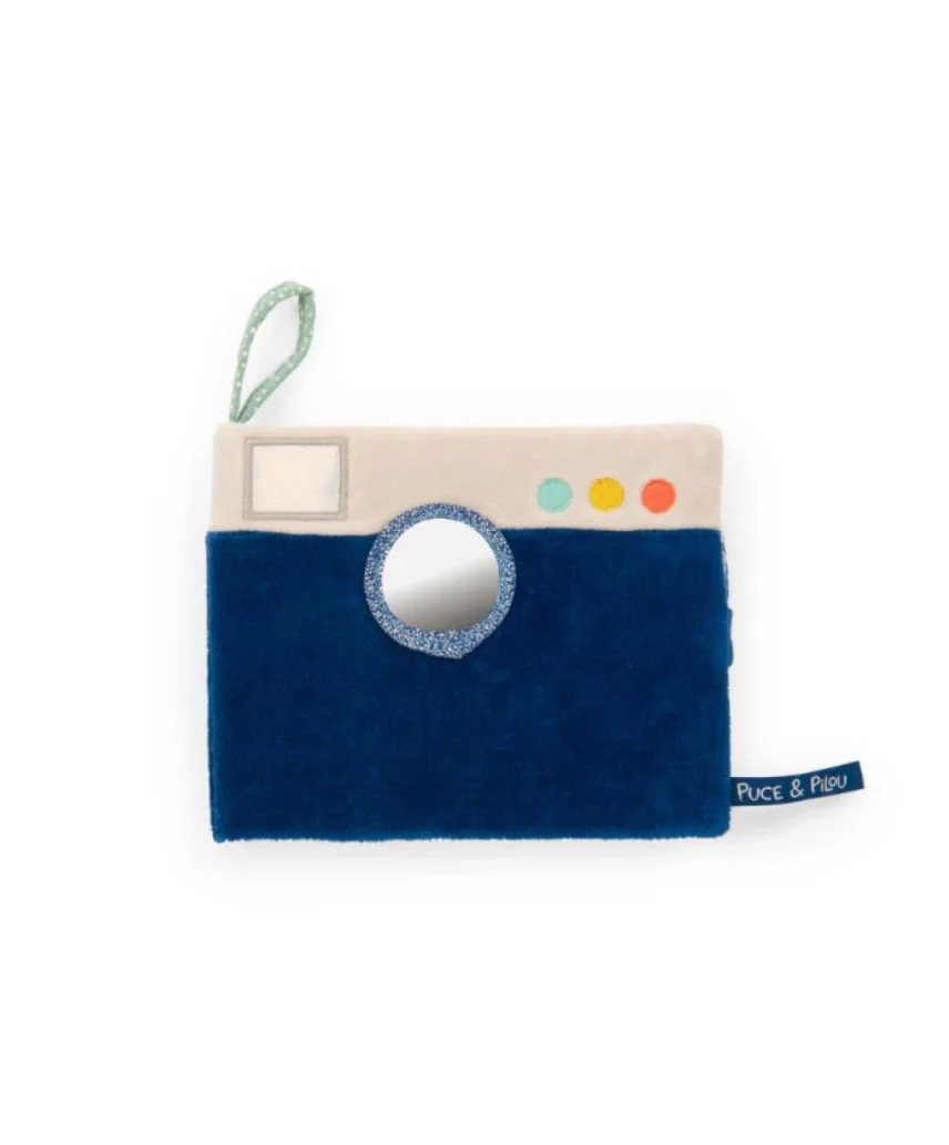 Découvrez l’album photo textile de la collection Puce & Pilou de Moulin Roty, un album tout doux en velours en forme d’appareil photo, avec 9 pochettes pour ranger vos photos préférées. Pratique, il est équipé d’un lien pour l’accrocher et d’une fermeture velcro. Parfait comme cadeau de naissance.