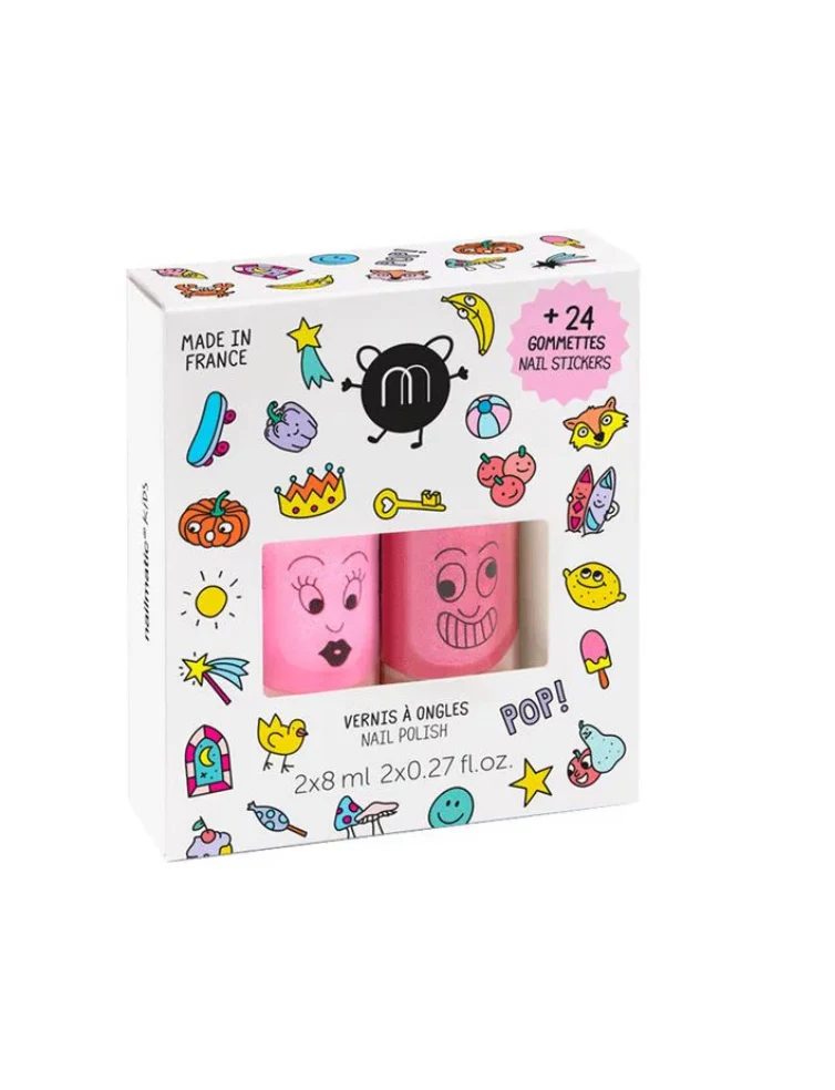 On craque pour ce duo de vernis à ongles accompagné de 24 stickers rigolos ! Ces vernis vegan, made in France, sont aussi jolis que respectueux des petites peaux sensibles. Le coffret, fun et inclusif, convient aussi bien aux filles qu’aux garçons. Il contient un vernis rose nacré, un rose pailleté, et une planche de 24 stickers à coller sur les ongles. Faciles à enlever à l’eau savonneuse, ces vernis à base d’eau et biosourcés prennent soin des ongles tout en limitant leur impact sur la planète. Une idée cadeau parfaite pour un anniversaire !