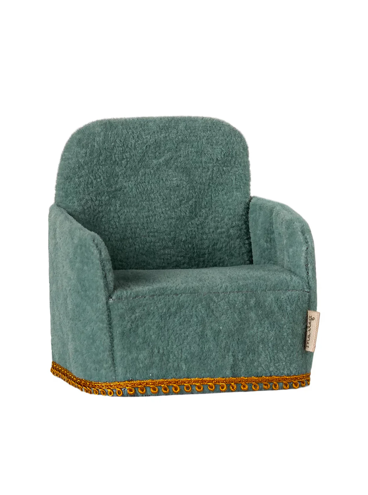 Même les petites souris méritent un moment de repos ! Ce fauteuil vintage rose de Maileg, ultra moelleux, est idéal pour une pause après une journée d’aventures. Son velours doux et ses finitions dorées apportent une élégance chaleureuse. Conçu pour accueillir tous les petits personnages Maileg, il se plie et s’assemble facilement pour un usage pratique.