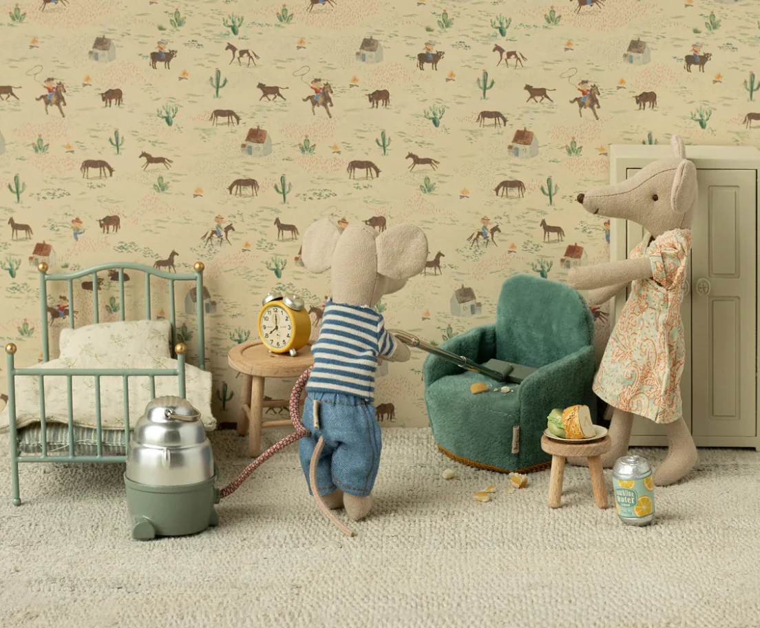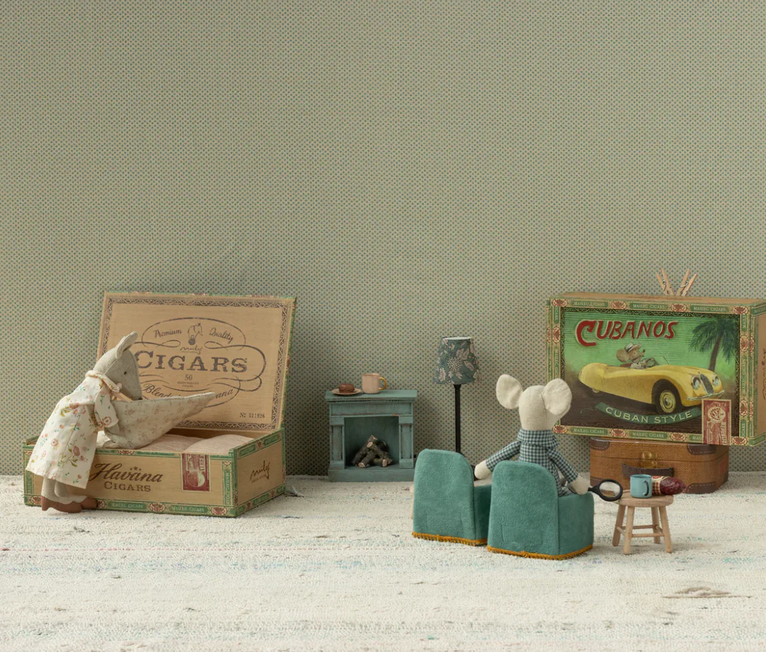 Même les petites souris méritent un moment de repos ! Ce fauteuil vintage rose de Maileg, ultra moelleux, est idéal pour une pause après une journée d’aventures. Son velours doux et ses finitions dorées apportent une élégance chaleureuse. Conçu pour accueillir tous les petits personnages Maileg, il se plie et s’assemble facilement pour un usage […]