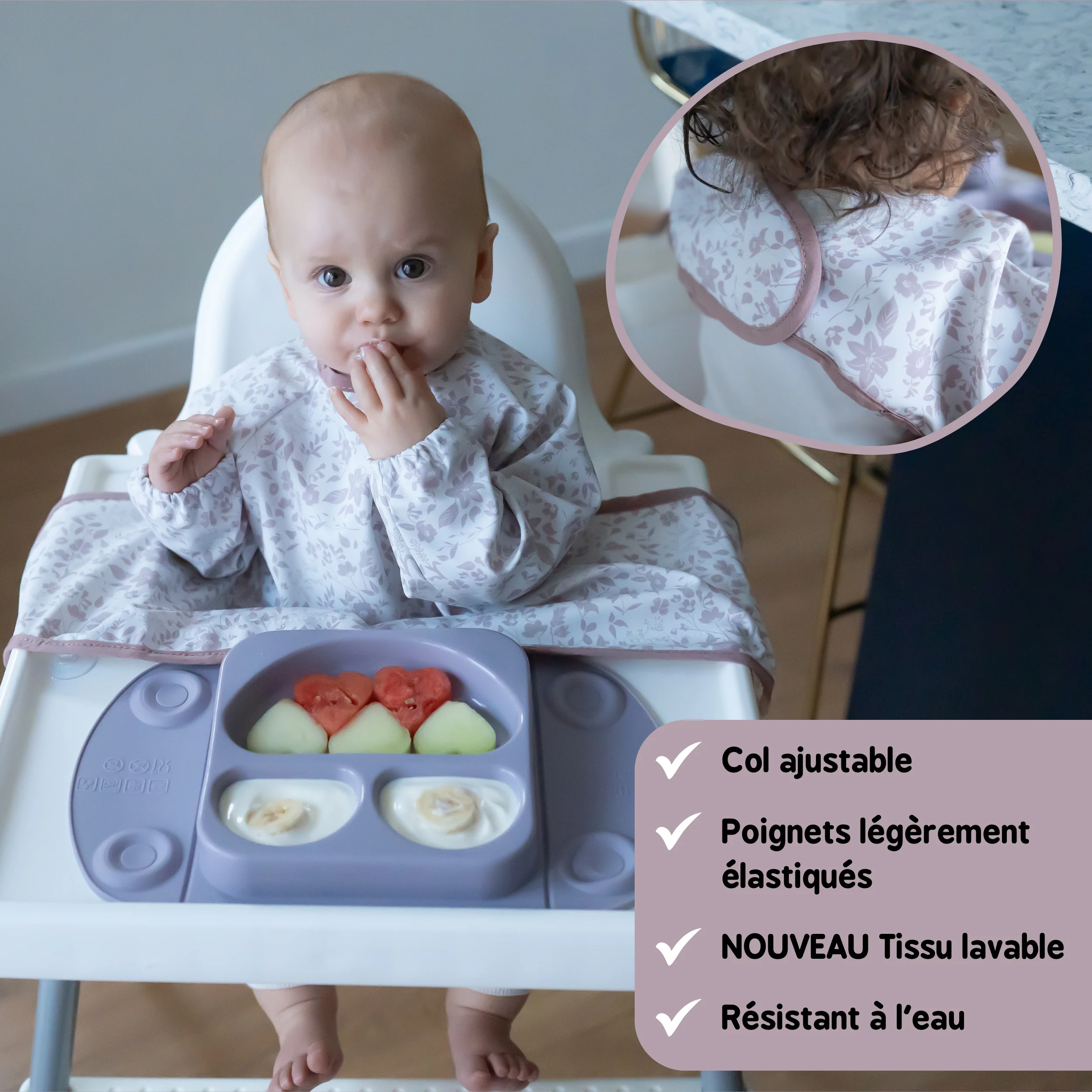Protège vêtements, chaise haute et sol pendant les repas