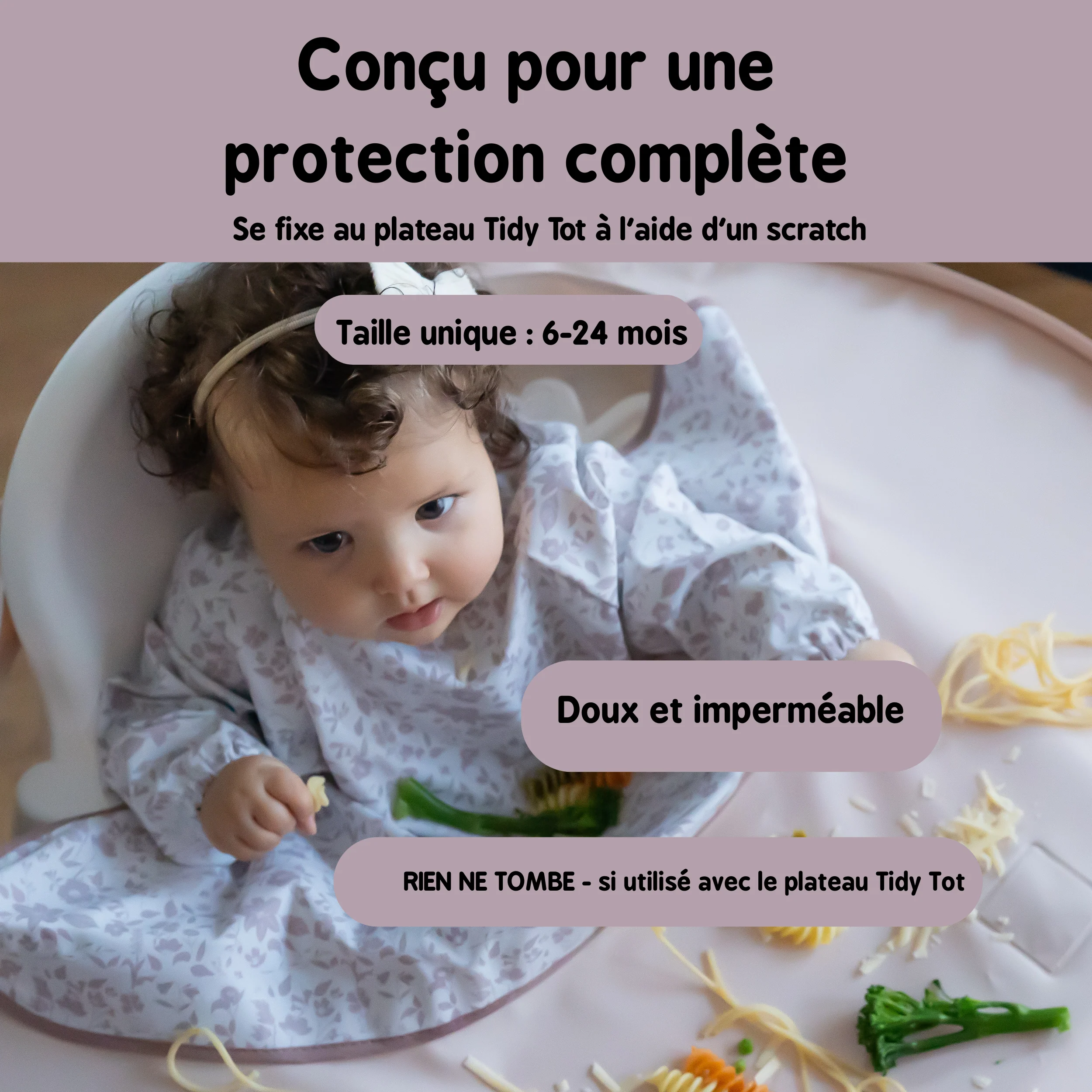 Protège efficacement les vêtements de bébé pendant les repas