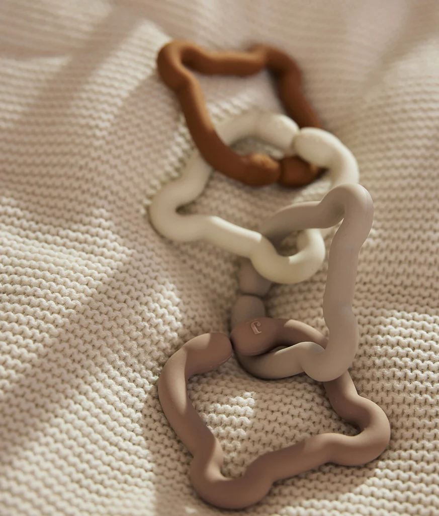 Ces anneaux en silicone se fixent facilement au landau ou au siège auto, évitant que votre bébé ne les laisse tomber. Vous pouvez aussi y accrocher d’autres jouets pour encore plus de plaisir. Idéaux pour les petits qui aiment mâchouiller ou qui font leurs dents, ces anneaux doux et sûrs en silicone alimentaire sont parfaits à la maison comme en promenade. Un jouet 2-en-1 qui ravira petits et grands !