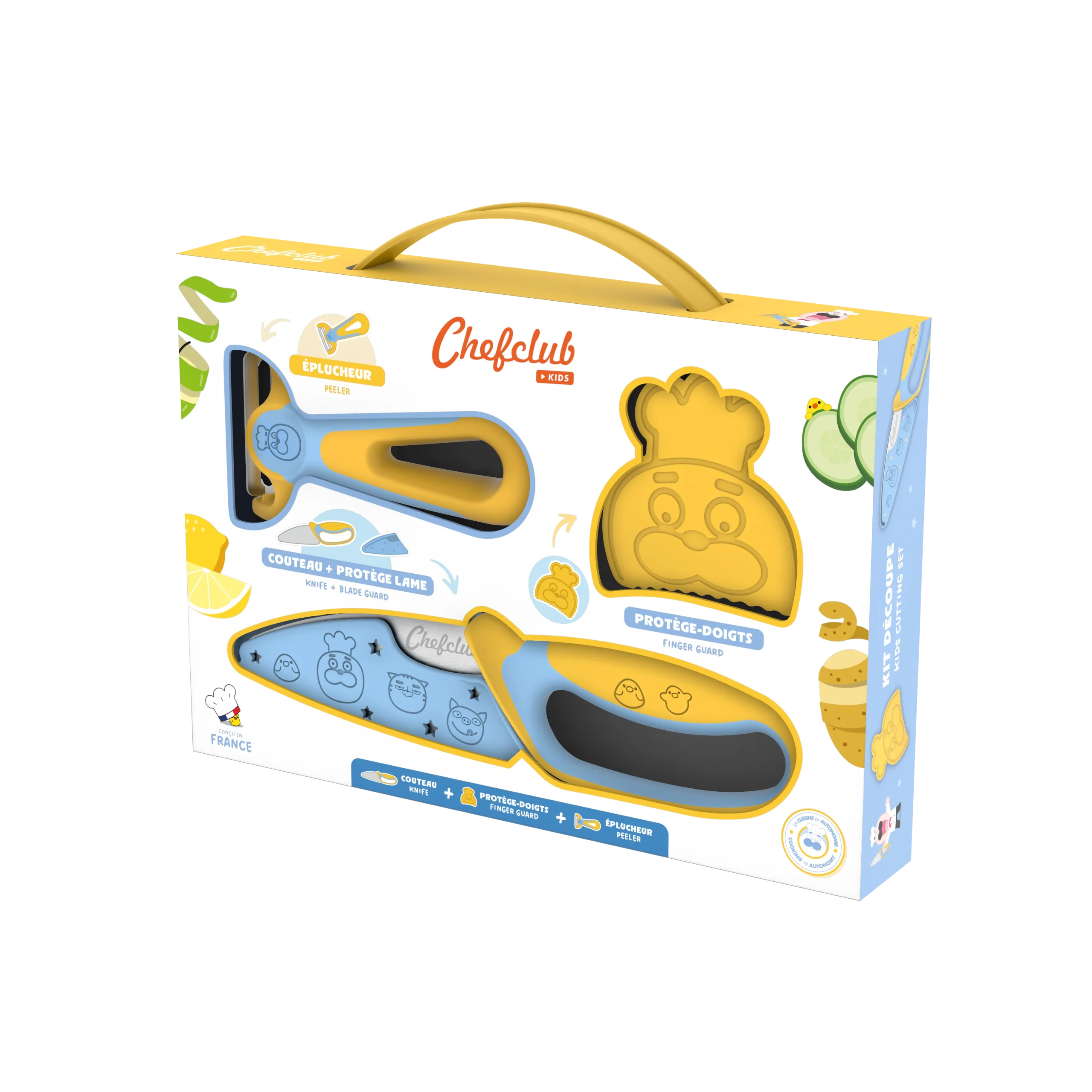 Conçu pour accompagner les enfants dans leurs premières aventures culinaires, ce kit comprend le couteau du chef et l’éplucheur kids, tous deux spécialement pensés pour leurs petites mains. Grâce à leur prise en main ergonomique et leurs matériaux antidérapants, ces ustensiles permettent d’apprendre les bons gestes en toute confiance et sans danger.