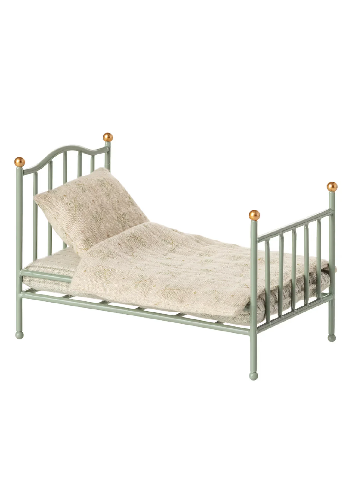 Offrez à vos amis Maileg une nuit pyjama confortable dans ce lit en métal au style vintage. Il comprend une literie douce réalisée avec les magnifiques tissus imprimés Maileg, idéale pour les petites souris.