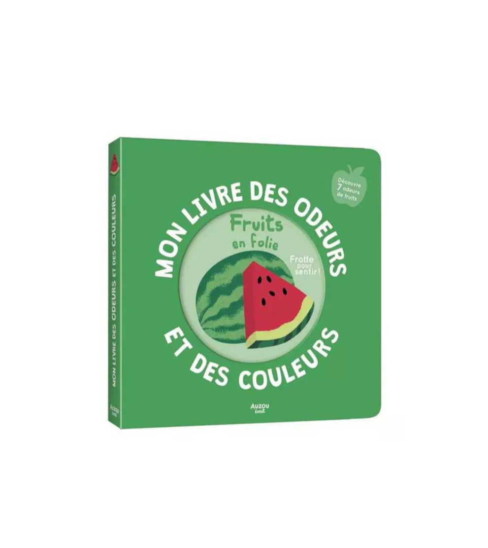 Plongez dans Mon livre des odeurs et des couleurs d’Auzou, un livre cartonné animé conçu pour stimuler les sens des tout-petits. Chaque double-page mêle une couleur, un imagier et une senteur autour des fruits. À gauche, des illustrations simples et enfantines dévoilent une teinte, mais que cache le rabat ? En le frottant du doigt, l’enfant découvrira sept parfums surprenants. Avec ses pages épaisses et coins arrondis, ce livre ludique est parfait pour les petits curieux.