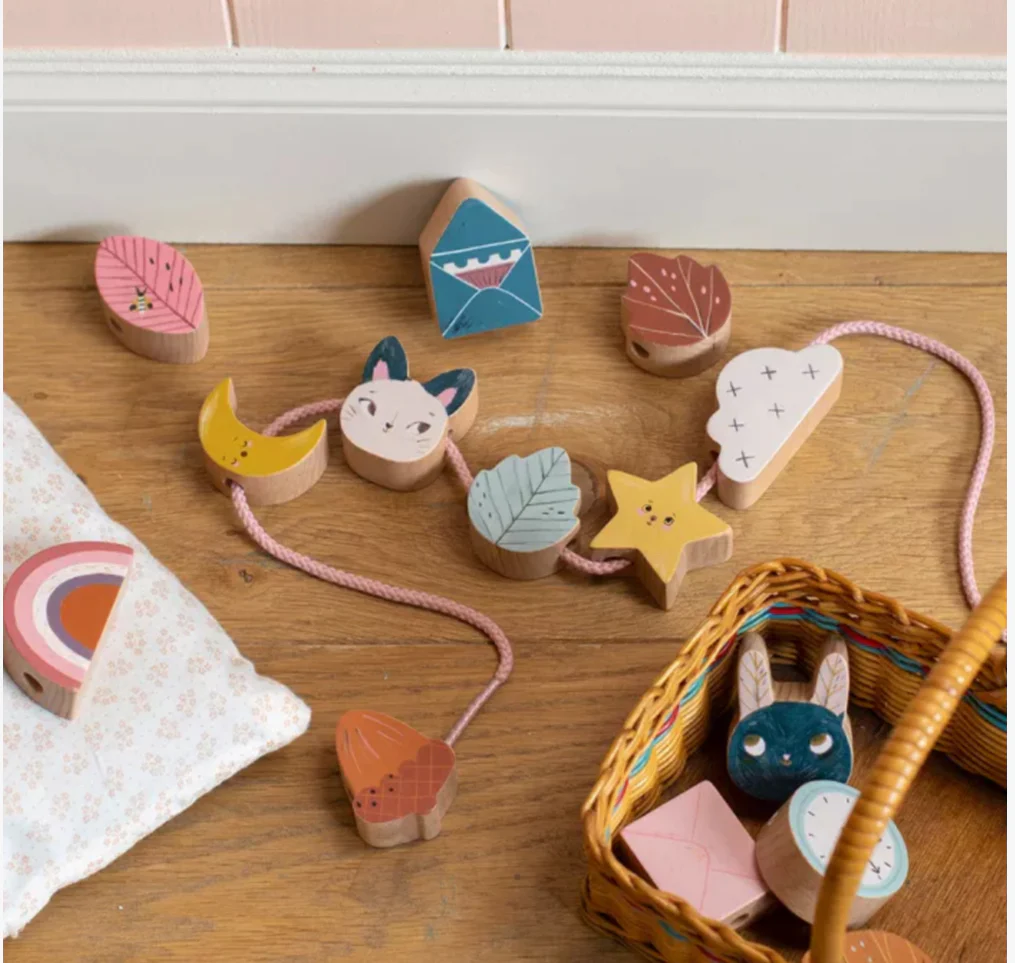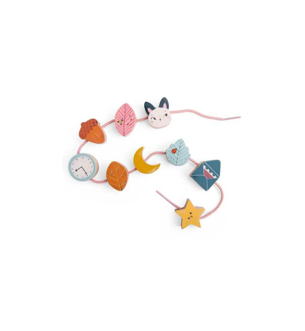 - 14 perles en bois – 2 lacets inclus