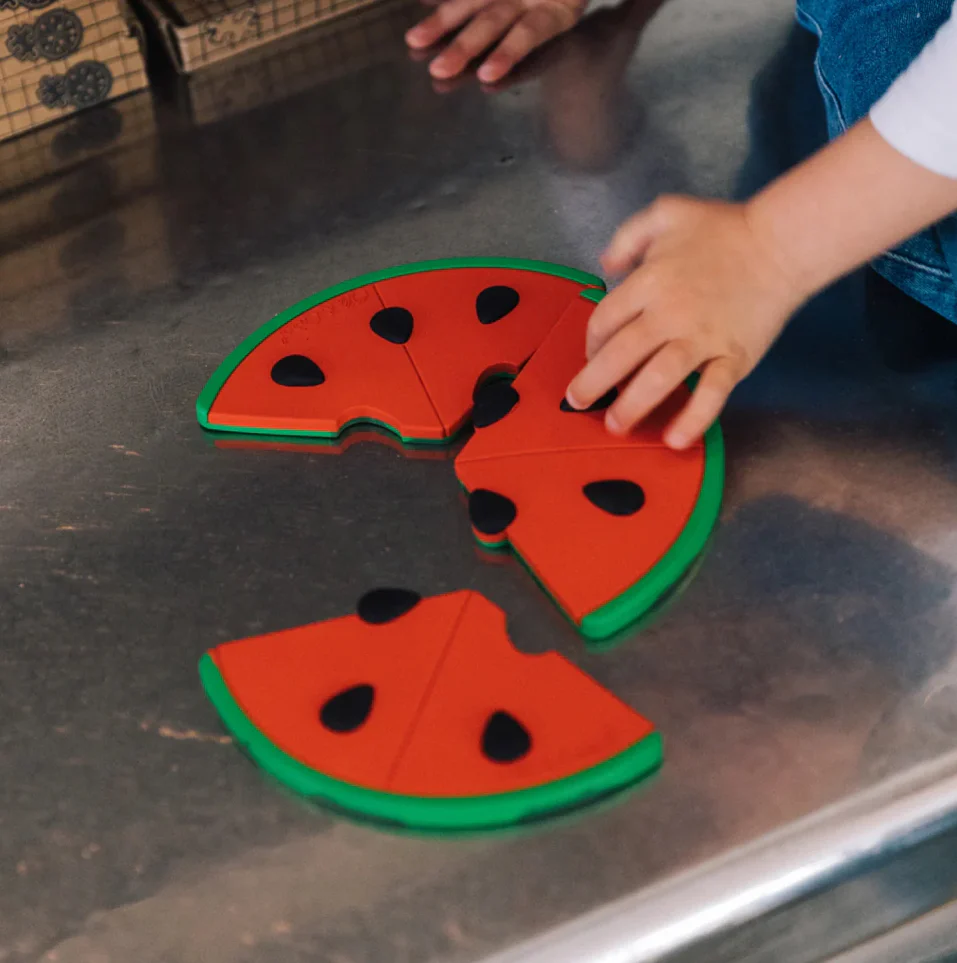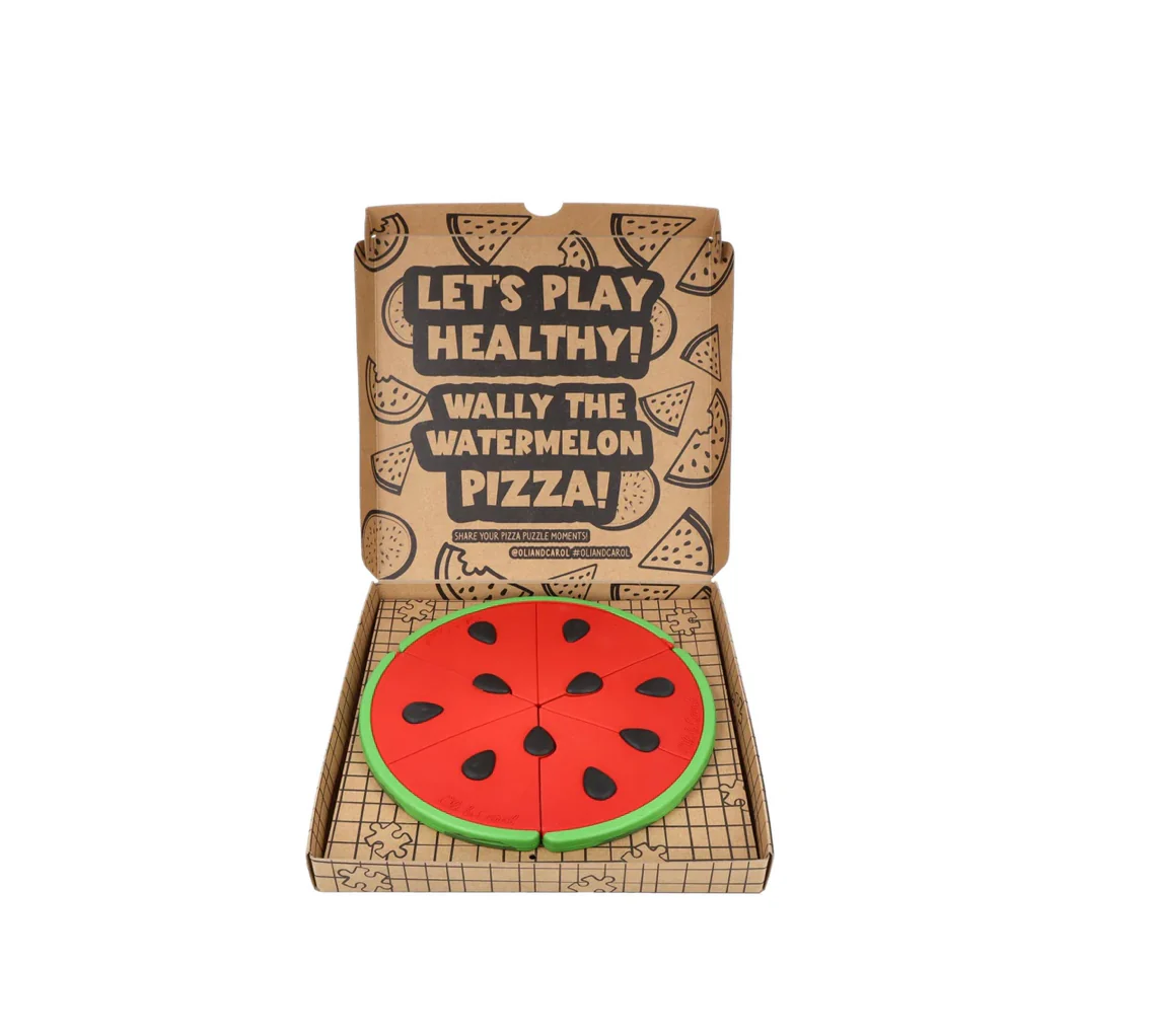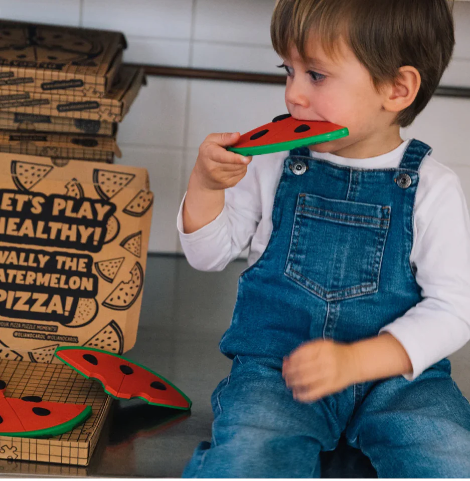 Ce puzzle de 3 pièces, inspiré de notre anneau de dentition pastèque le plus apprécié, est conçu pour stimuler la logique, le raisonnement et la résolution de problèmes chez les tout-petits, tout en leur offrant un moment de jeu amusant. Il est présenté dans une boîte qui ressemble à une vraie pizza, pour que les enfants aient la sensation d’ouvrir une pizza fraîche et savoureuse !