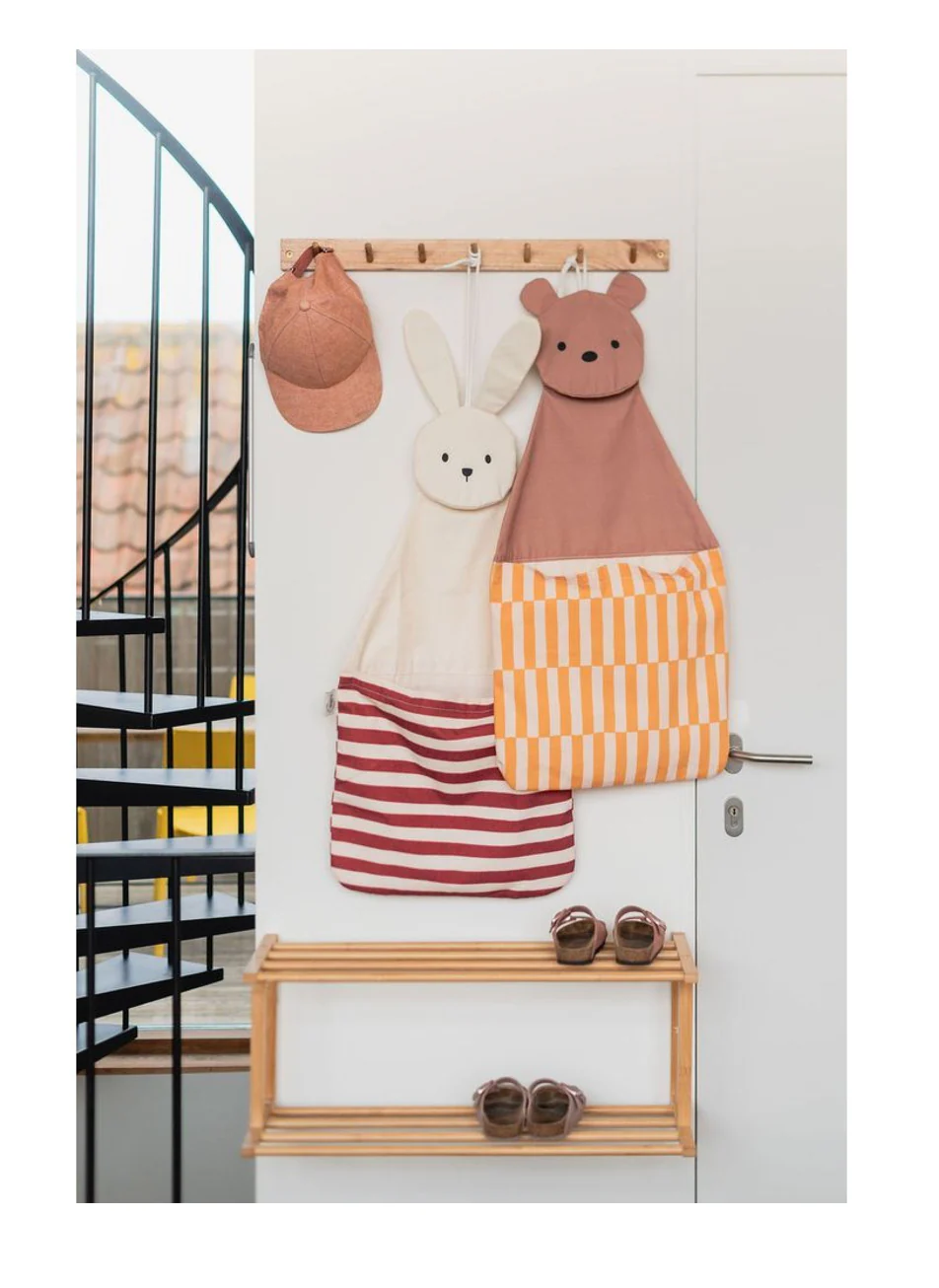 Le sac mural en forme d’ours Toto de PLAY&GO rend le rangement amusant ! Les enfants prendront plaisir à y déposer leurs jouets ou leurs pyjamas, tandis que les parents garderont leurs indispensables, comme les couches, à portée de main. Avec ses couleurs vives et son design joyeux, il illumine n’importe quelle pièce — chambre, salle de jeux ou salle de bain. Facile à transporter, il se transforme aussi en sac fourre-tout. Ses cordons ajustables permettent de l’accrocher facilement à des crochets, poignées de porte ou étagères. L’idéal pour aider votre enfant à développer son autonomie pour le rangement de sa chambre.