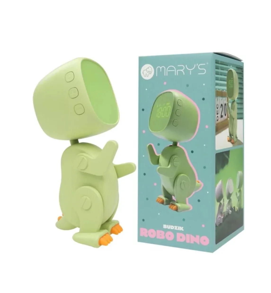 Ce réveil avec son design amusant en forme de petit Robot Dino Vert est un excellent choix pour des réveils en douceur et pleins de bonne humeur !