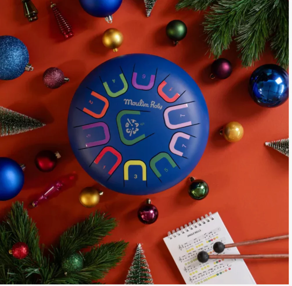 Offrez à votre enfant une première expérience musicale avec ce magnifique tambour à languettes de la collection Puce & Pilou de Moulin Roty. Pensé pour les petites mains, cet instrument à la fois ludique et poétique permet à votre enfant d’explorer les sons, les rythmes et les mélodies en toute autonomie. Avec ses 11 notes jouables de différentes manières grâce aux deux baguettes en bois, il pourra créer des harmonies agréables sans difficulté. Ce tongue drum aide à développer l’écoute, la motricité fine, la créativité et la concentration, idéal dès 3 ans pour une initiation musicale douce et enrichissante.