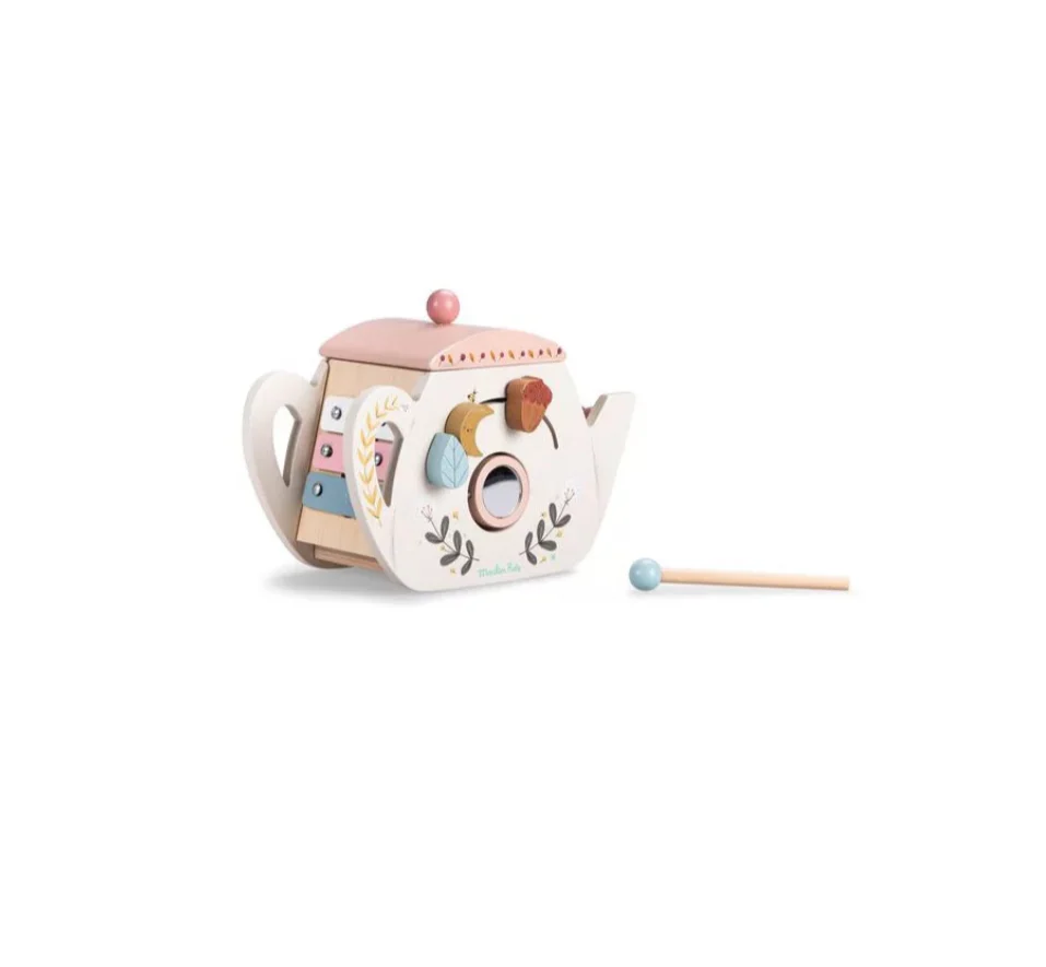 Entrez dans un monde de découvertes avec cette adorable théière d’activités en bois pour bébé ! Chaque face offre une nouvelle expérience de jeu et d’apprentissage : boulier, formes à encastrer, roues à faire tourner, xylophone… Sans oublier un petit miroir caché pour stimuler l’éveil.