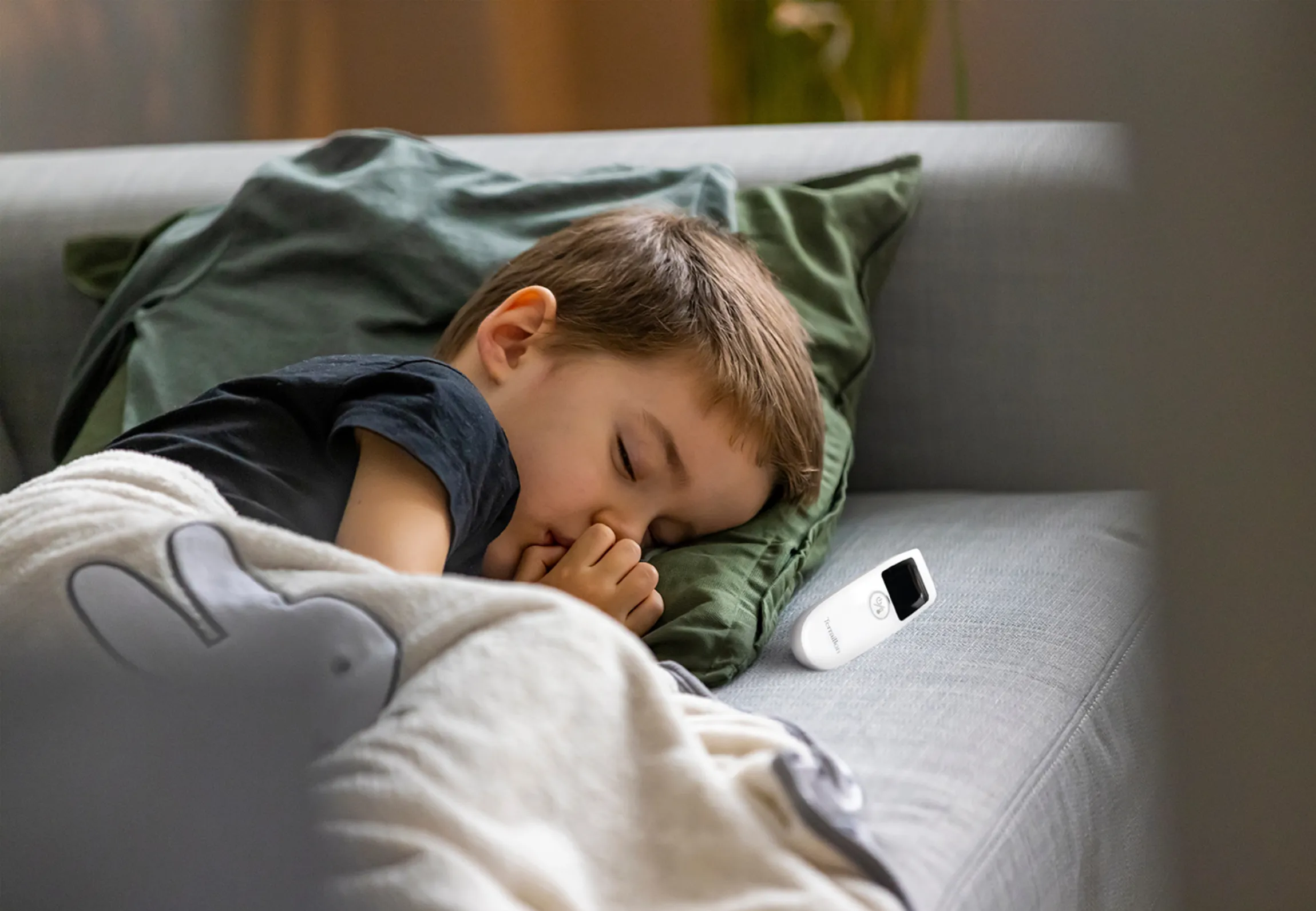 La lecture des résultats est simplifiée grâce à une conversion automatique de la température sur l’échelle de température rectale (la plus connue) et grâce à l’annonce en couleur des résultats.