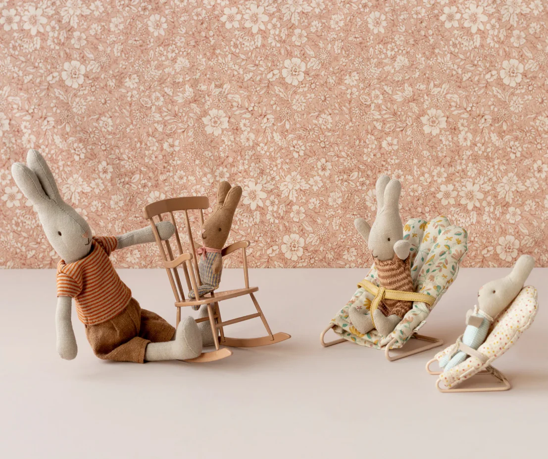 Le transat bébé My de Maileg est l’accessoire parfait pour les poupées et souris de la collection. Avec son design élégant et intemporel, il apporte une touche de douceur aux jeux d’imitation. Conçu avec des matériaux de qualité, ce transat permet aux enfants de prendre soin de leurs petits compagnons en reproduisant les gestes du quotidien. Un accessoire indispensable pour développer l’imagination et créer des histoires tendres autour de la maternité et des soins aux bébés.