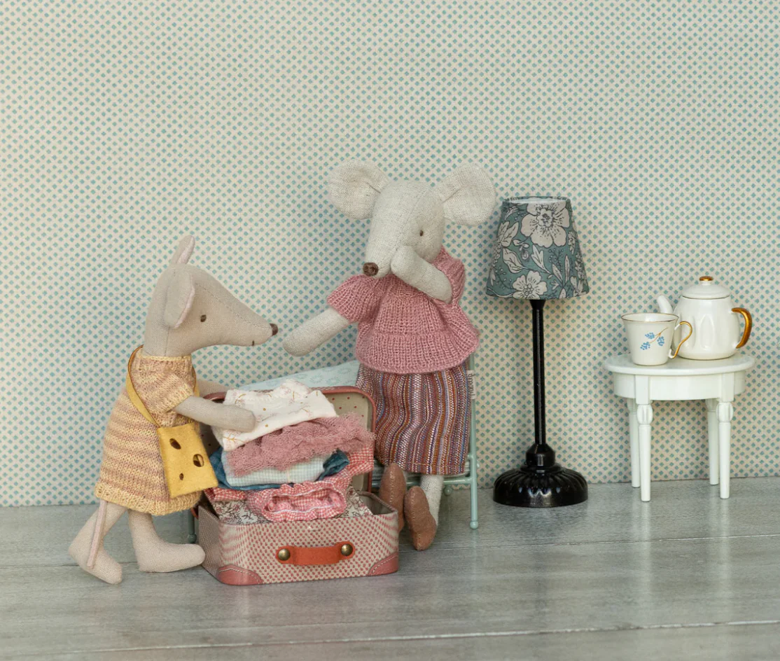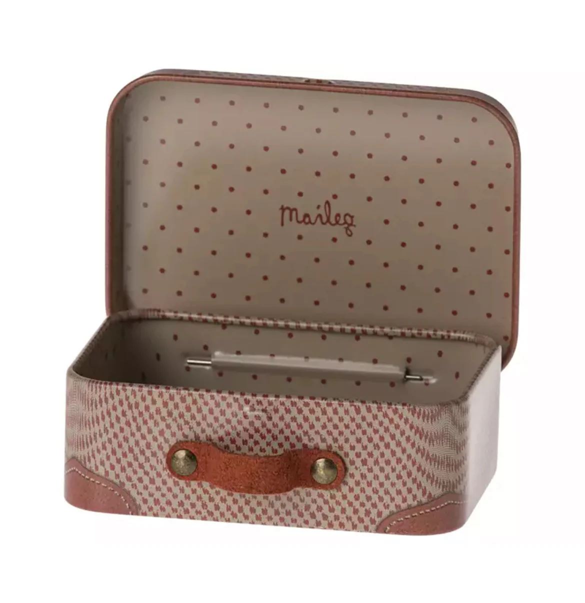 Cette charmante mini valise en métal, ornée d’un joli vintage, est idéale pour garder précieusement vos petits trésors. Elle fait aussi un rangement décoratif parfait pour une maison de poupée Maileg, ajoutant une touche de douceur et de fantaisie.