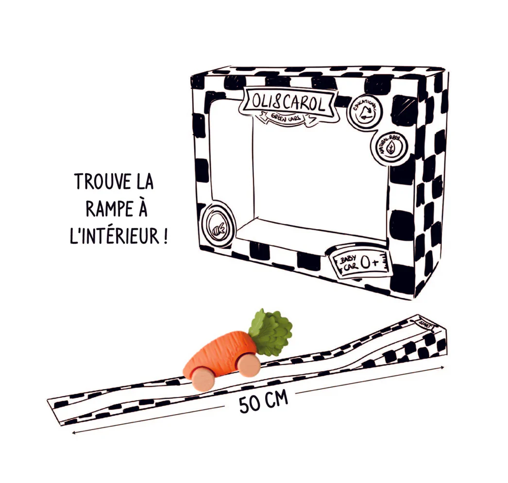 Nous vous présentons Cathy la Carotte, le jouet de voiture durable pour bébés ! Avec un design inspiré des fruits et légumes, fabriqué à la main avec du caoutchouc naturel et du bois FSC. Cette voiture pour bébés favorise le jeu interactif, le développement cognitif et les compétences sociales. Son emballage comprend une petite rampe escamotable à l’intérieur, le rendant réutilisable et amusant ! Parfait pour les enfants de 0 à 4 ans, ce jouet stimule les sens et l’imagination de bébé grâce à son rendu réaliste.