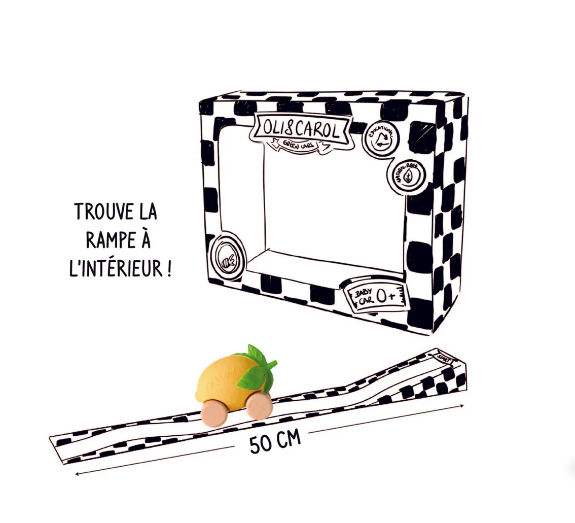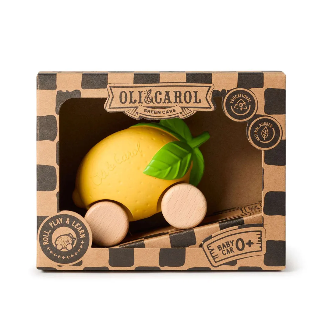 Voiture en caoutchouc naturel – Lou le Citron – Oli & Carol