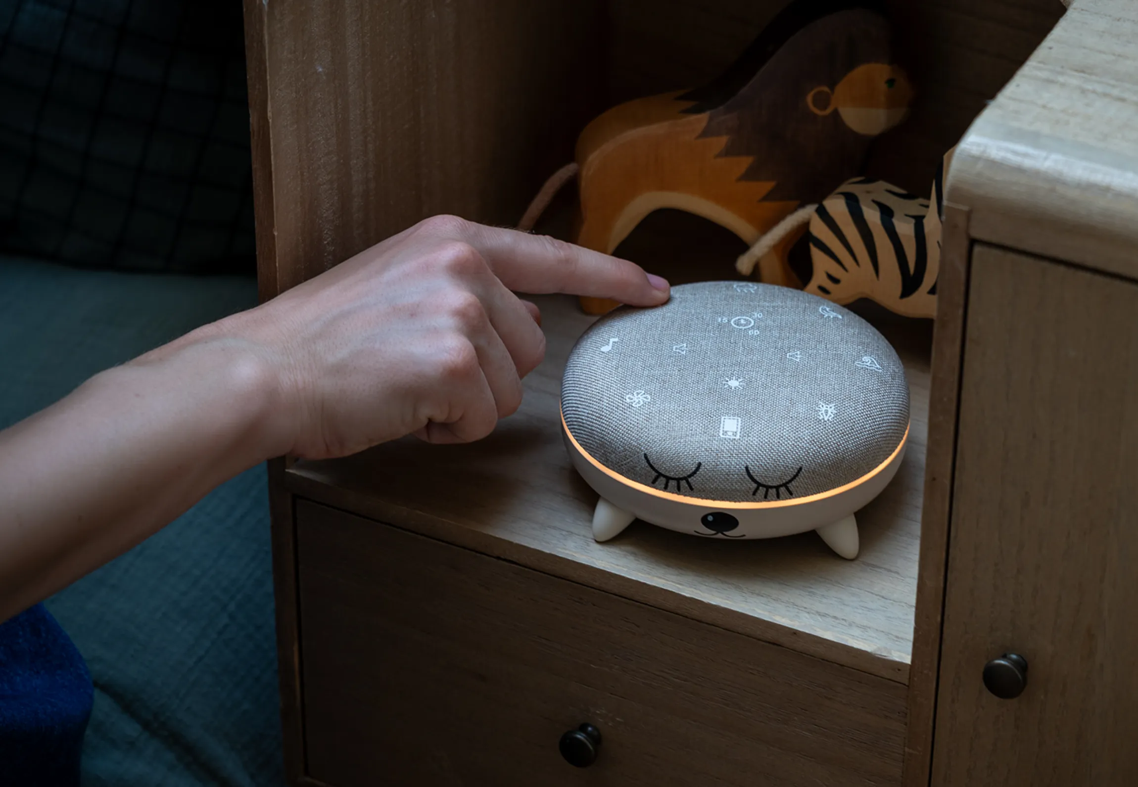 Zen Box Kid aidera votre enfant à se détendre et s’endormir en l’immergeant dans une ambiance sonore relaxante. Diffusant des sons comme des bruits de la nature, un bruit blanc ou une berceuse, Zen Box Kid propose plusieurs durées de programme et une fonction veilleuse.